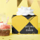 Emballage de cadeau de fin d'études ou décoration de fête de fin d'études avec un capuchon noir et un gland doré sur fond jaune or. Modifiez le texte pour ajouter son nom.