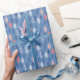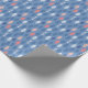 De mignons renards pourchassant des feuilles - papier d'emballage. Une gamme de teintes bleues mélangées à des teintes coralliennes sur un arrière - plan bleu tranquille.