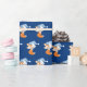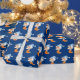 Cet adorable emballage cadeau de Noël présente un arrière - plan bleu avec un motif mignon d'un renard qui porte un chapeau bleu santa et un ruban bleu. C'est le papier d'emballage parfait pour Noël pour les enfants.