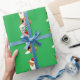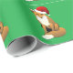 Ce superbe papier d'emballage présente un renard assis presque comme un chien et portant un chapeau de Père Noël sur sa tête. Cette image amusante est sur un arrière - plan vert et est une idée très unique pour l'enveloppement cadeau de Noël.
