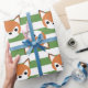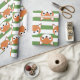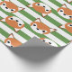 Ce papier d'emballage mignon comporte les renards oranges, et les rayures de vert et de blanc.
