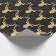 Papier Cadeau Renne élégant de Noël d'or sur la damassé noire