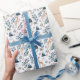 Un papier d'emballage de vacances présente des illustrations d'aquarelle originales de rennes et de forêts avec des noms personnalisables.