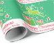 Obtenez Noël enveloppé avec ce personnage unique de rennes dansants mignon avec nez rouge dans le blanc, vert clair et rouge. Papier cadeau d'emballage de Noël. Lit Joyeux Noël, avec l'amour des MacGregors. Customisez avec votre nom de famille ou votre propre salutation et message. Uniquement illustré et conçu par Sarah Trett.