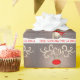 Obtenez Noël enveloppé avec ce personnage unique de rennes mignon avec le nez rouge et de grands bois dans le papier d'emballage de Noël rayé neige blanche. Customisez avec votre propre salutation et nom de société ou de famille. Lit actuellement Joyeux Noël des Smiths. Uniquement illustré et conçu par Sarah Trett.