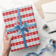 Papier Cadeau Rennes nordiques de Noël et Snowflakes Rouge
