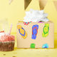 Ce beau papier d'emballage personnalisé présente un motif mignon et tendance de tongs colorés sandales sur un arrière - plan couleur sable. Parfait pour envelopper un cadeau pour une femme ou une fille qui aime les sandales !