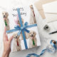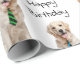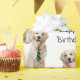 Cute Golden Retrievers avec cravate rayée et Happy Birthday texte sur arrière - plan blanc. La couleur Arrière - plan peut être modifiée.