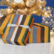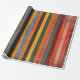 Papier d'emballage vintage rayé orange, rouge, vert et jaune