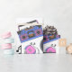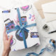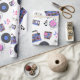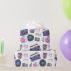 Retro bleu et rose Vinyl Records, boombox, jeux vidéo et cassettes d'anniversaire envelopper cadeau d'anniversaire.