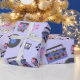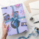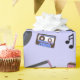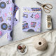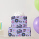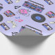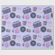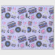 Retro bleu et rose Vinyl Records, boombox, jeux vidéo et cassettes d'anniversaire envelopper cadeau d'anniversaire.