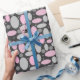 Papier Cadeau rétro, années 60, pois, gris et rose