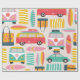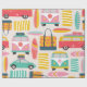 Ce motif ludique et animé présente des fourgons rétro colorés, des planches de surf et des équipements de plage, tels que des serviettes rayées et des sacs de plage. Les couleurs vives et les éléments fantaisistes donnent une ambiance nostalgique de road-trip sur la plage, avec des planches de surf empilées au-dessus des fourgonnettes, évoquant les souvenirs de journées amusantes au soleil. L'arrière - plan de beige douce améliore la palette de couleurs joyeuses, rendant le design animé et énergique.