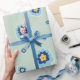 A bright retro-style floral design in calming blue tones. Playful and cheerful.