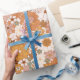 Papier Cadeau Retro Boho Terracotta Floral Fleurs Bohème