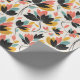 A Colorful Wrapping Paper Designed In Retro Colors Of Black, Teal, Gold And Orange Shaped In A Floral Leaf Design
