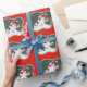 Papier d'enveloppement créé à partir d'une illustration vintage de Noël des années 1940 d'un bonhomme de neige et d'un chien mignon.