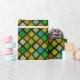 Cette illustration est basée sur l'art d'abstraction géométrique, ce design incorpore une variété de carrés vert clair, vert moutarde et vert foncé.