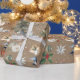 Papier d'emballage de style kraft de Noël à l'atmosphère vintage et rustique, avec des éléments d'hiver peints à la main.