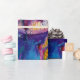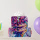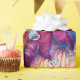 Clown rose, coloré, capricieux, drôle jouant du bugle avec un hibou expressif et des notes musicales joyeuses, fleurs, feuilles en rouge vif, fuchsia, violet, violet, bleu, couleurs blanches, aquarelle de Bulgan Lumini (c)