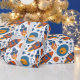 Papier Cadeau Rockets Stars et planètes Orange et Bleu