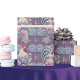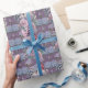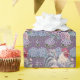 These watercolor roosters wandered into hydangea bushes and tried to hide, but you can still see their combs and beaks peeking out. The flowers are pink, pinkish purple, purple, and blue, and the roosters feathers reflect the floral colors with a mix of gray. The backgound is a mauve like gray purple. This farmhouse French chic design would make a lovely wrapping paper for a birthday, retirement, friend gift, teacher, or more.