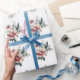 Papier Cadeau Rose aquarelle rose avec feuillage sarcelle