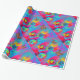 Papier Cadeau ROSE BLEU turquoise FLEURS BLANCHES, BOUTEILLES D'