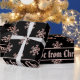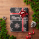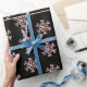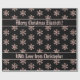 Élégant Rose Gold Snowflakes Motif avec texte personnalisé Joyeux Noël Elizabeth Avec amour de Christopher sur Arrière - plan noir, vous pouvez modifier ou supprimer tout le texte, Papier cadeau de Noël, choisir mat ou brillant