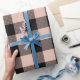 Papier d'emballage à carreaux Buffalo rose pastel – Papier cadeau à carreaux blush pour baby showers, anniversaires et cadeaux de mariage