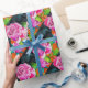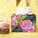 D'une aquarelle d'art originale de l'artiste Sacha Grossel, ce tableau lumineux et vibrant représente deux roses roses vives en fleur contre un arrière - plan à texture orange et foncée. Contemporain et moderne, ce design est coloré et tonifiant.
