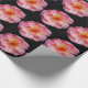 Papier Cadeau Rose rose avec gouttes de rosée sur fond noir