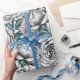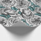 Beau motif numérique peint à la main, roses blanches aux feuilles bleus.
