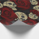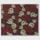 Papier Cadeau Roses Rouges & Crânes Floral Gris Noir Gothique
