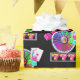 La roue colorée par néon de machine à sous, les matrices, les cartes de nerf de boeuf et une rangée de 7 ont imprimé sur le papier noir d'emballage cadeau.