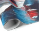 Ce design d'échecs est décoré de couleurs rouge blanc et bleu avec le roi, la reine, l'évêque et les pions.