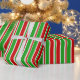 Ce décor à thème de Noël est décoré de rayures rouge, blanc et vert. Un papier comme celui-ci peut être utilisé pour préparer des cadeaux donnés pour célébrer un anniversaire, un mariage, un anniversaire ou tout autre événement.