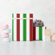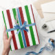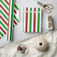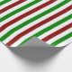 Ce papier d'emballage est décoré de rayures de Noël d'inspiration verte, blanche et rouge. Envelopper du papier comme celui-ci peut être amusant à utiliser lors de la préparation de cadeaux ou de cadeaux pour célébrer un anniversaire, un mariage, un anniversaire ou tout autre événement.