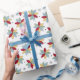 Cette fleur funky papier d'emballage du milieu du siècle présente des fleurs de marguerite abstraites rouges, bleues, jaunes et vertes, ainsi que des étoiles et des points. Il ajoutera que retro POP que vous voulez envelopper vos cadeaux!