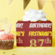 Ce design papier d’emballage comporte un message comme "FIRSTNAME’S 87th BANTHDAY!", avec le "87th" ayant une apparence de couleur fausse/imitation or, et avec le nom et "BANTHDAY" dans une police amusante et audacieuse. Le nom est personnalisable et l'arrière - plan est de couleur rouge. Un papier comme celui-ci pourrait peut-être être utilisé pour envelopper les cadeaux d'anniversaire donnés à quelqu'un pour célébrer leur quatre-vingt-septième anniversaire. [~Z0000204]