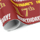 Ce design papier d’emballage comporte un message comme "FIRSTNAME’S 17th BANTHDAY!", avec le "17th" ayant une apparence de couleur fausse/imitation or, et avec le nom et "BANTHDAY" dans une police amusante et audacieuse. Le nom est personnalisable et l'arrière - plan est de couleur rouge. Un papier comme celui-ci pourrait peut-être être utilisé pour envelopper les cadeaux d'anniversaire donnés à quelqu'un pour célébrer leur dix-septième anniversaire. [~Z0000204]