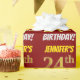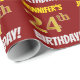 Ce design papier d’emballage comporte un message comme "JENNIFER’S 24th BIRTHDAY!", avec le "24th" ayant une apparence de couleur fausse/imitation or, et avec le nom et "BIRTHDAY" dans une police amusante et audacieuse. Le nom peut être personnalisé, et l'arrière - plan est de couleur rouge. Un papier comme celui-ci pourrait peut-être être utilisé pour envelopper les cadeaux d'anniversaire donnés à quelqu'un pour célébrer son vingt-quatrième anniversaire. [~Z0000204]