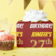 Ce design papier d’emballage comporte un message comme "27e anniversaire de JENNIFER!", avec le "27e" ayant une apparence de couleur fausse/imitation or, et avec le nom et "ANNIVERSAIRE" dans une police amusante et audacieuse. Le nom peut être customisé, et l'arrière - plan est de couleur rouge. Un papier comme celui-ci pourrait peut-être être utilisé pour envelopper les cadeaux d'anniversaire donnés à quelqu'un pour célébrer son vingt-septième anniversaire. [~Z0000204]