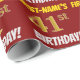 Ce papier d’emballage comporte un message comme "FIRST-NAME’S 41st BANTHDAY!", avec le "41st" ayant une apparence de couleur fausse/imitation or, et avec le nom et "BANTHDAY" dans une police amusante et audacieuse. Le nom est personnalisable et l'arrière - plan est de couleur rouge. Un papier comme celui-ci pourrait peut-être être utilisé pour envelopper les cadeaux d'anniversaire donnés à quelqu'un pour célébrer leur quarante et unième anniversaire. [~Z0000204]