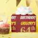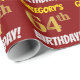 Ce design papier d’emballage comporte un message comme "64e anniversaire de GREGORY!", avec le "64e" ayant une apparence de couleur fausse/imitation or, et avec le nom et "anniversaire" dans une police amusante et audacieuse. Le nom peut être personnalisé, et l'arrière - plan est de couleur rouge. Un papier comme celui-ci pourrait peut-être être utilisé pour envelopper les cadeaux d'anniversaire donnés à quelqu'un pour célébrer son soixante-quatrième anniversaire. [~Z0000204]