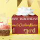 Ce design papier d’emballage comporte un message comme "3ème anniversaire de CustomName !", avec le "3ème" ayant une apparence de couleur fausse/imitation or. Le nom peut être customisé, et l'arrière - plan est de couleur rouge. Il pourrait peut-être être utilisé pour envelopper les cadeaux donnés pour le troisième anniversaire de quelqu’un. [~Z0000178]