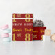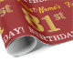 Ce design papier d’emballage comporte un message comme "81e ANNIVERSAIRE du prénom !", le "81e" ayant une apparence de couleur fausse/imitation or. Le nom peut être customisé, et l'arrière - plan est de couleur rouge. Il pourrait peut-être être utilisé pour envelopper les cadeaux donnés pour le quatre-vingt-unième anniversaire de quelqu’un. [~Z0000178]