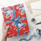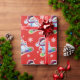 Papier Cadeau Rouge mat de bonhomme de neige de snowboarding