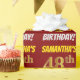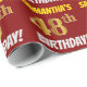 Ce modèle de papier d'emballage comporte un message comme "48e ANNIVERSAIRE DE SAMANTHA !" avec le "48e" ayant une apparence de couleur dorée fausse/imitée, et avec le nom et "ANNIVERSAIRE" dans une police amusante et grasse. Le nom peut être personnalisé, et le fond est de couleur rouge. Du papier d'emballage comme celui-ci pourrait peut-être être utilisé lors de l'emballage de cadeaux d'anniversaire offerts à quelqu'un pour célébrer son quarante-huitième anniversaire.