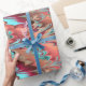 Papier Cadeau Rouge, orange et motif marbré par turquoise